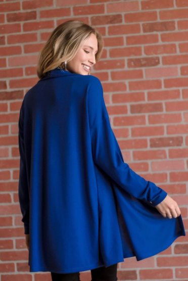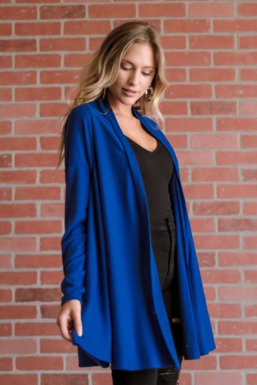 Solid, long body cardigan in a loose fit with an open front and long sleeves.