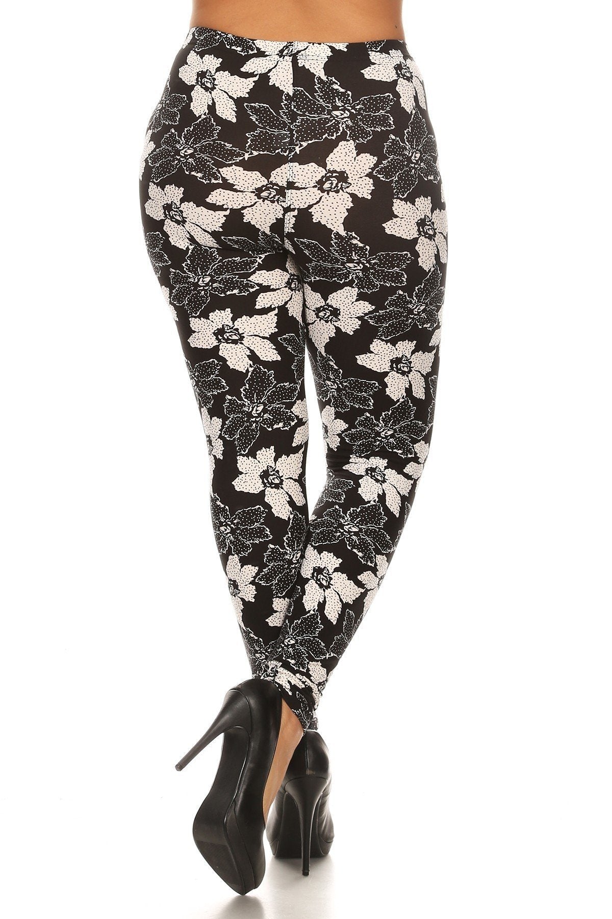 Plus Size Floral Pattern Printed Knit Legging With Elastic Waistband
